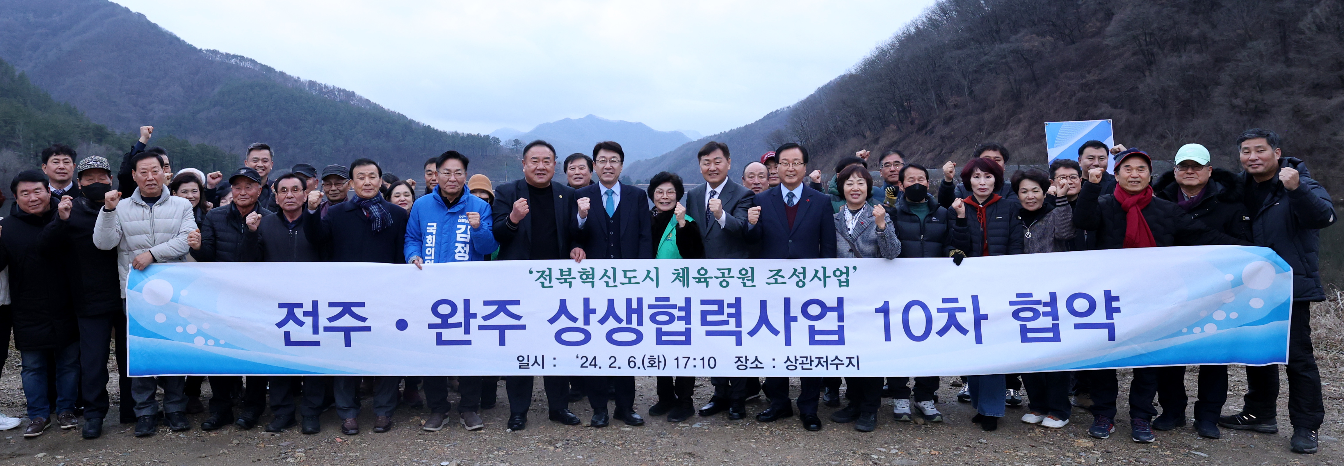 [도정=뉴전북] 전북특별자치도는 지난 6일 완주군 상관저수지에서 김관영 전북자치도지사를 비롯해 우범기 전주시장과 유희태 완주군수가 참석한 가운데 ‘전주·완주 상생협력사업 10차 협약식’을 가졌다.