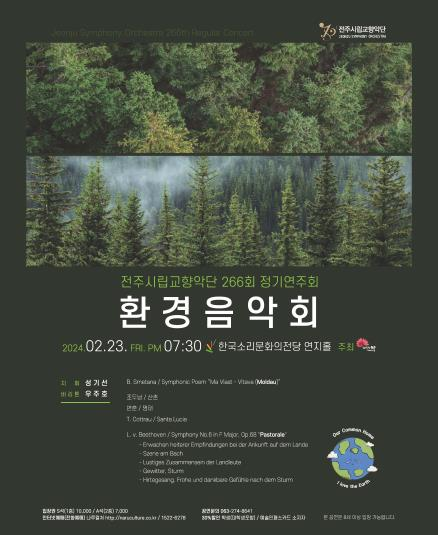 전주시는 오는 23일 오후 7시 30분, 한국소리문화의전당 연지홀에서 전주시립교향악단의 환경음악회가 열린다고 16일 밝혔다.