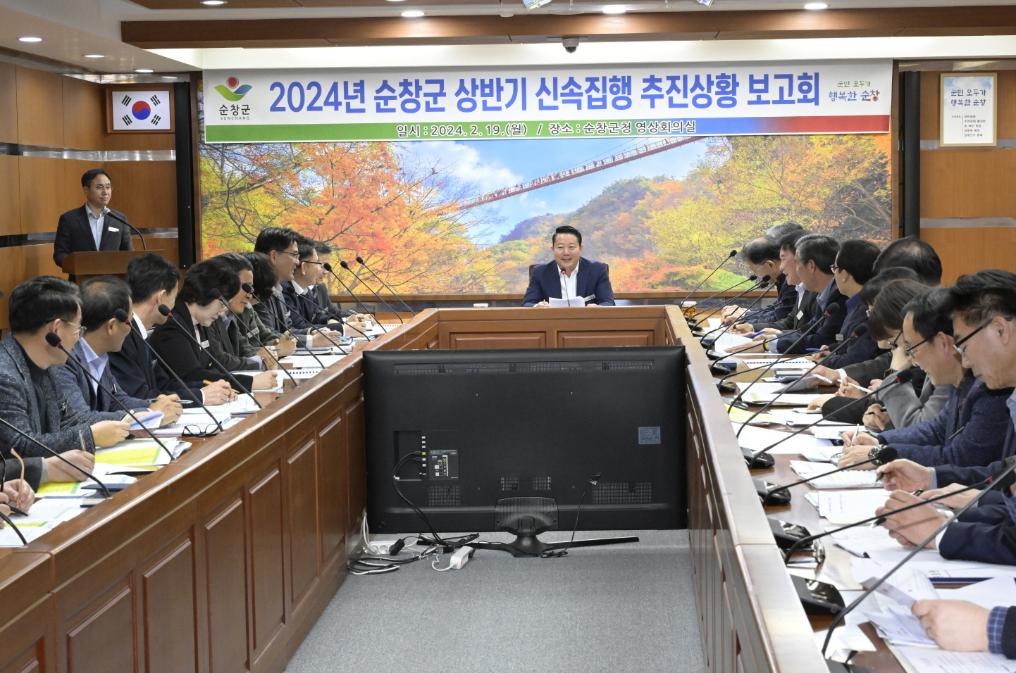 [순창=뉴전북] 전북 순창군은 지난 19일 고물가·고금리 여파로 위축된 지역경제 활성화를 위해 최영일 군수 주재하에 전 부서장이 참석한 ‘2024년도 상반기 신속집행 추진상황 보고회’를 가졌다고 밝혔다.