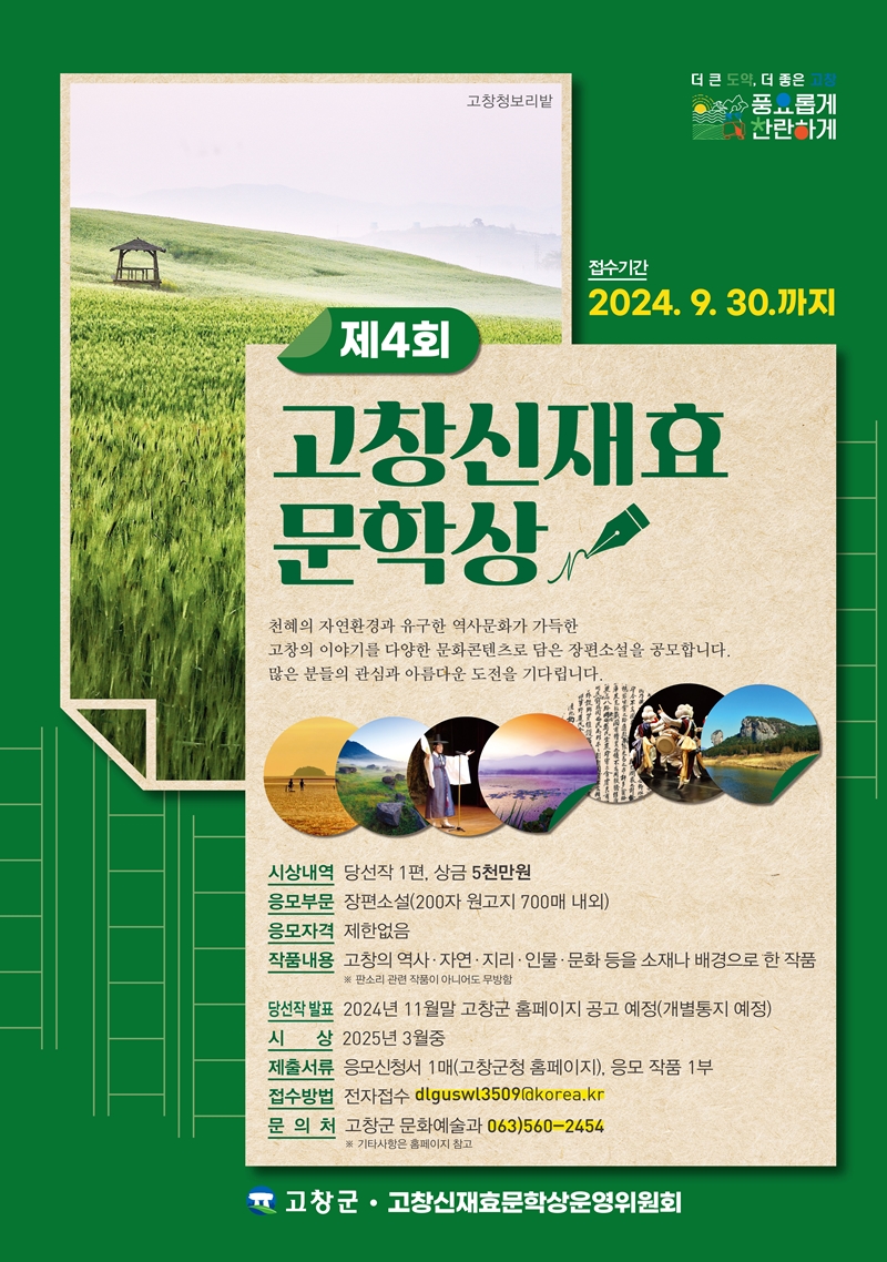 [고창=뉴전북] 전북특별자치도 고창군이 ‘제4회 고창신재효문학상’ 작품 공모를 시작했다.