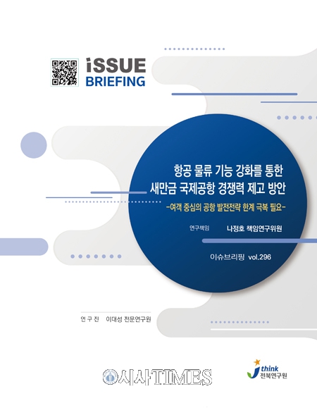 [도정=뉴전북] 이남호)은 이슈브리핑 “항공물류 기능 강화를 통한 새만금 국제 공항 경쟁력 제고 방안”을 발간하였다. 여객 중심의 공항 발전전략 한계 극복을 위한 항공물류 기능 강화가 필요하다는 게 핵심 내용이다.