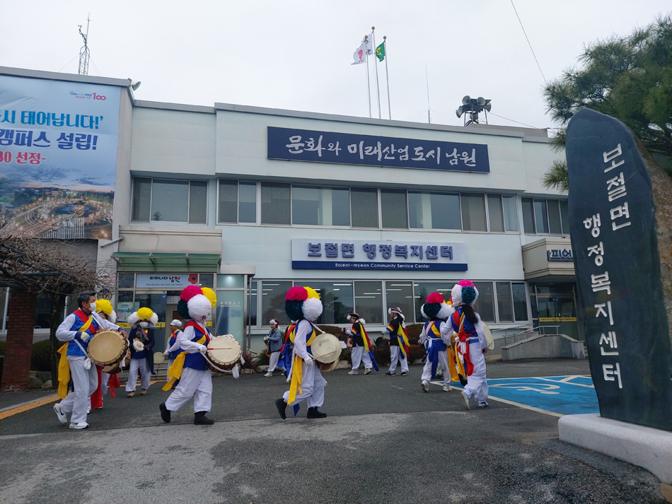 [남원=뉴전북] 보절면 농악단(단장 노창규)은 갑진년 새해 주민화합과 마을의 안녕을 기원하기 위하여 오전 10시 보절면행정복지센터를 시작으로 유관기관, 업체, 주변 마을 등을 순회하며 지신밟기 행사를 펼쳤다.