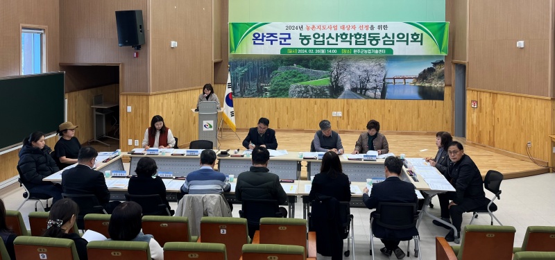 [완주=뉴전북] 완주군은 26일 군농업기술센터에서 농업관련기관 및 농업인단체 등 심의위원 15명이 참석해 완주군 농업산학협동심의회를 열었다.