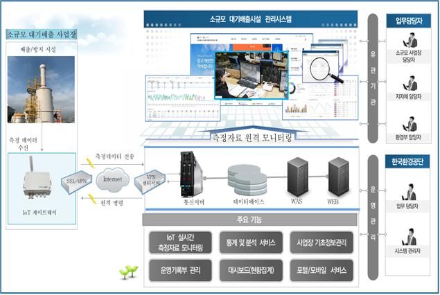 사물인터넷이 설치되면 관할기관에서는 이를 활용해 대기오염물질 배출시설과 방지시설에 대한 실시간 모니터링이 가능하며, 해당 사업장과 정보가 공유돼 방지시설 상태 확인 및 소모품 교체 주기 파악 등이 용이하다.