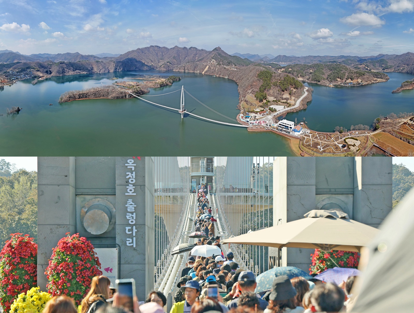 - 봄기운 완연한 3월 1일 재개장, 한 달간 입장료 무료 홍보 프로모션,작년과 달리 출렁다리 아래까지 물 가득, 아찔함과 수려한 풍광 자랑