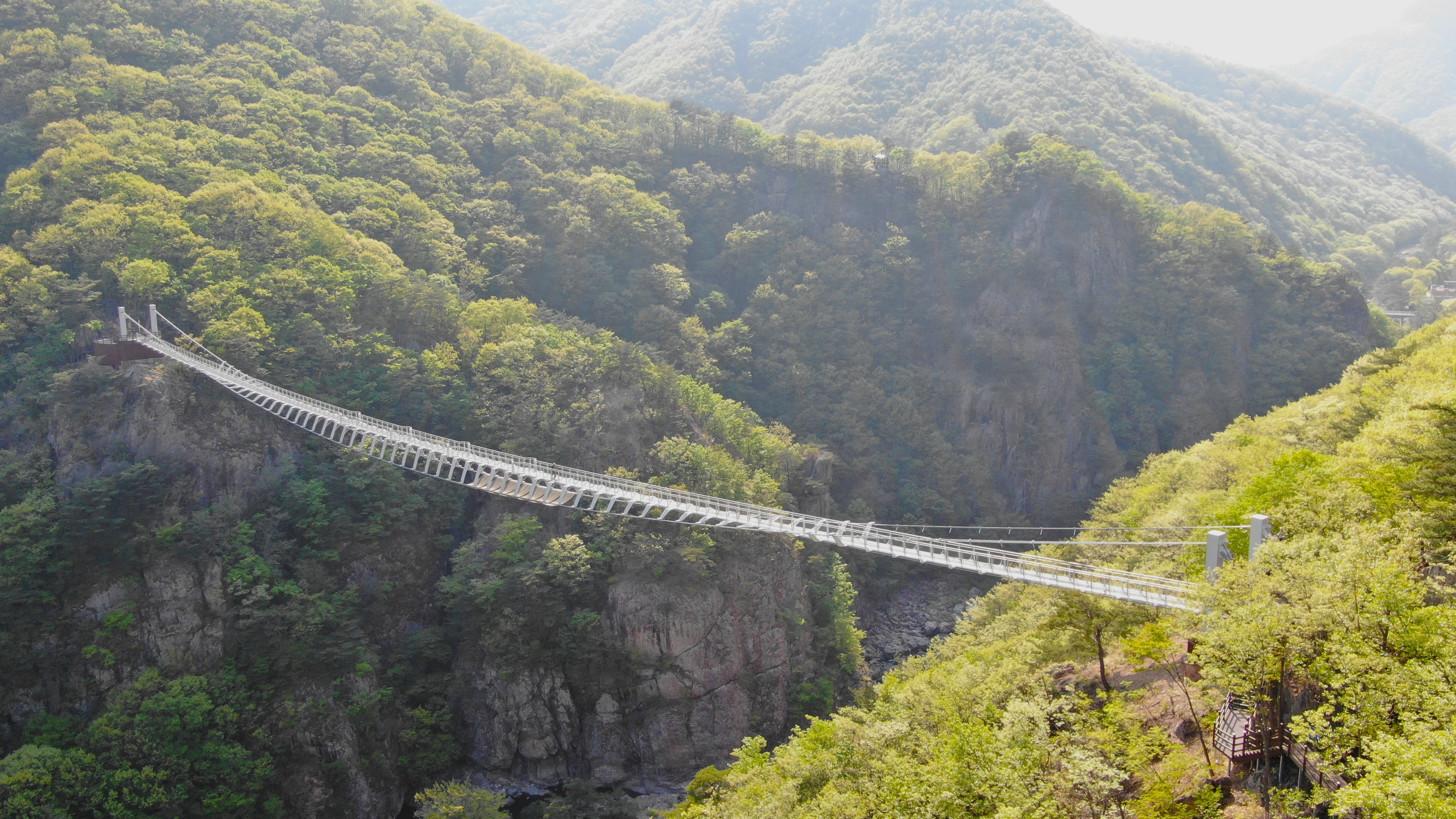 운일암반일암 구름다리는 명도봉에서 명덕봉까지 220m 길이로 이어진 구름다리로 국가지질공원으로 지정된 운일암반일암의 절경을 한눈에 바라보며 자연의 경이로움을 느껴볼 수 있다.