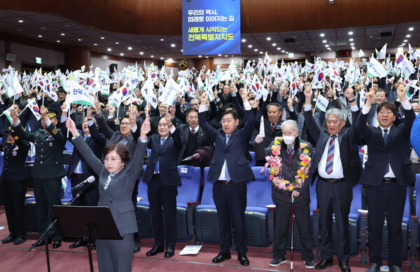 [도정=뉴전북] 전북특별자치도(도지사 김관영)는 제105주년 3·1절을 맞이해 1일 오전 10시 도청 공연장에서 애국지사, 독립유공자 유족, 도내외 주요인사, 국군장병 등 900여 명이 참석한 가운데 기념식을 개최했다.