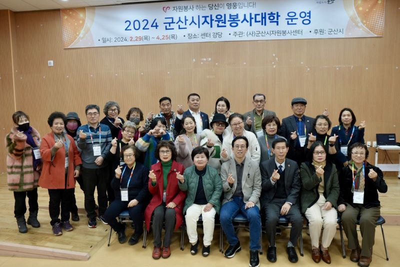 [군산=뉴전북] 사단법인 군산시자원봉사센터(이사장 황진)는 자원봉사리더를 양성하고자 29일 군산시자원봉사센터 강당에서 ‘2024 군산자원봉사대학’ 입학식을 개최하였다고 밝혔다.