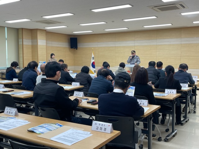 [사회=뉴전북] 김제경찰서(서장 백형석) 신풍지구대는 79시 검산동 행정복지센터 2층 회의실에서 개최한 이·통장 회의에 참석하여 보이스피싱·교통사고·절도 예방 홍보를 실시했다.