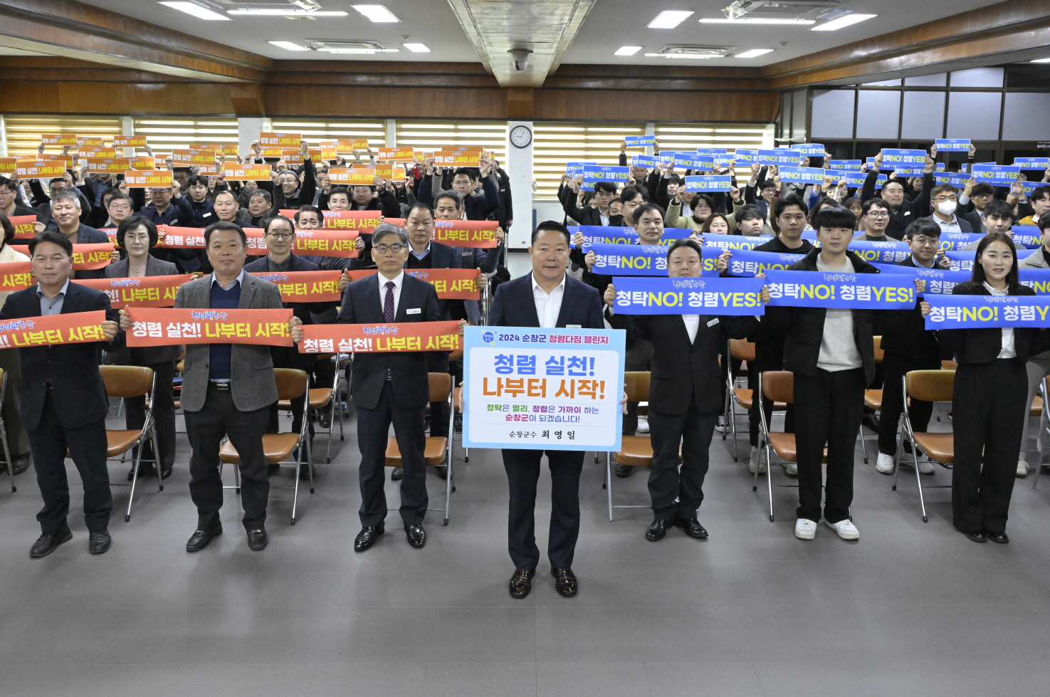 [순창=뉴전북] 전북 순창군이 청렴도 쇄신에 발 벗고 나선 가운데 최영일 순창군수를 비롯한 간부공무원들의 청렴 서약식에 이어 ‘청렴다짐 챌린지’ 캠페인을 시작해 화제다.