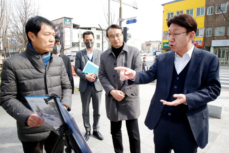 이어 우 시장은 다가교로 이동해 기존 도로를 보·차도의 구분이 없는 광장 형태의 도로로 재정비하는 ‘충경로 도로환경 개선사업’의 청사진과 사업구간 내 보행자의 안전을 위협하는 요소 등을 꼼꼼히 점검했다.