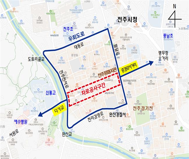 다만, 보도와 차도를 포장하는 공사의 특성상 공사 기간 중에는 교통이 일부 제한될 예정으로, 주변 상인과 전주시민, 전주를 찾는 관광객의 충경로 이용 시 큰 불편이 예상된다.