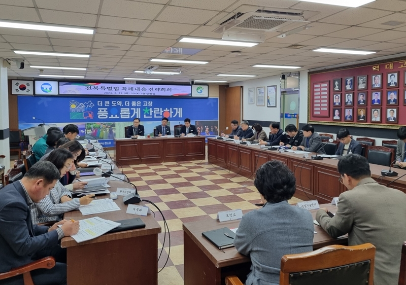 고창군은 12일 오전 2층 회의실에서 김철태 고창부군수를 비롯한 전 부서 주무팀장 등이 참석한 가운데, ‘전북특별법 특례대응 전략회의’를 개최했다.