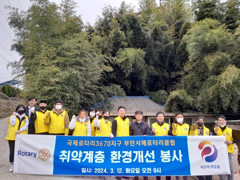이날 서해로타리클럽 회원들은 방치돼 있던 쓰레기 4t가량을 치우고 집 외부 환경개선 활동을 펼치는 등 위생환경 개선 및 생활 편의를 지원했다.