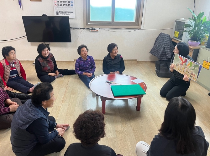 [김제=뉴전북] 김제시립도서관이 어르신을 찾아가 함께하는 ‘행복한 어르신 책과 만남(실버 책놀이)’프로그램을 진행하며 어르신들의 호응을 얻고 있다.