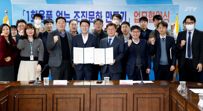 - 시, 14일 JTV전주방송과 ‘1회용품 없는 조직문화 만들기’ 업무협약 체결