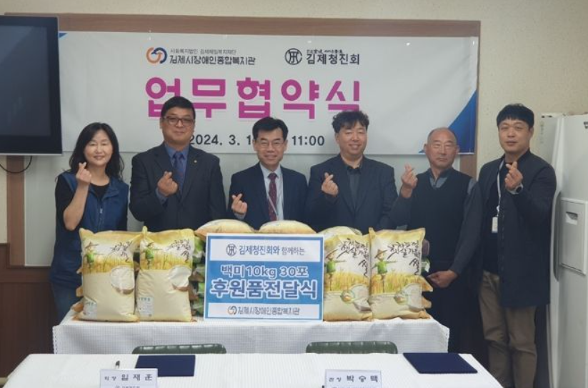 특히, 이날 협약식에서 김제청진회는 백미 10kg, 30포를 복지관에 기탁해 그 의미를 더했다.