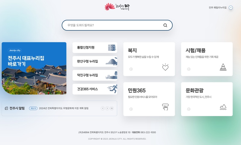 지난 2015년 이후 9년만에 대대적으로 개편된 전주시 대표 누리집은 ‘더 많은 시민들이, 더 쉽고, 더 편리하게 이용’이라는 콘셉트로 만들어졌다.
