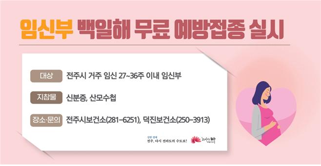 [전주=뉴전북] 전주시가 영아의 건강한 성장을 돕기 위해 임신부의 백일해 무료 예방접종을 지원한다.