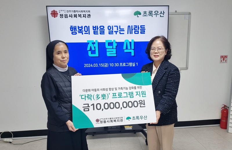 이에 따라 초록우산은 정읍사회복지관에 프로그램 지원금 1000만원을 전달했다.