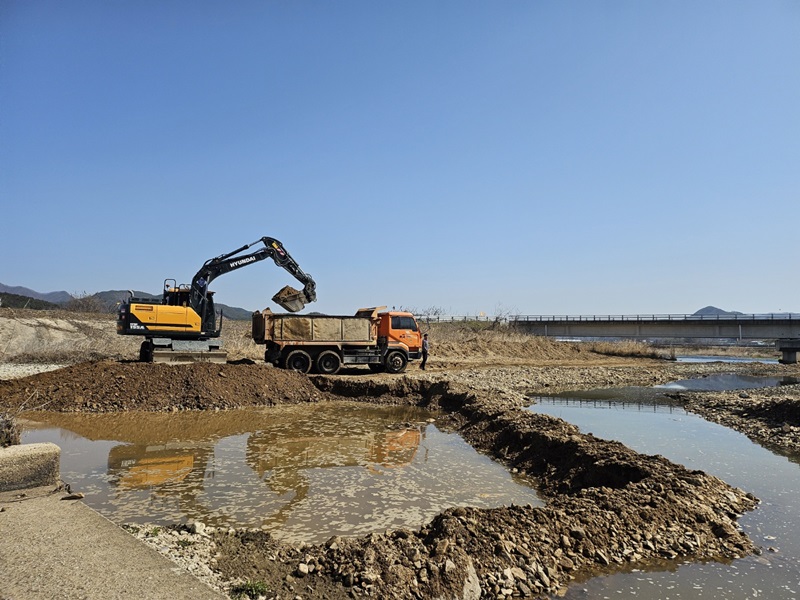 산외면에서는 이러한 위험을 제거하기 위해 굴삭기와 덤프트럭 등 장비를 투입해 동진강 바닥에 퇴적돼 있는 토사를 준설하고 있다.