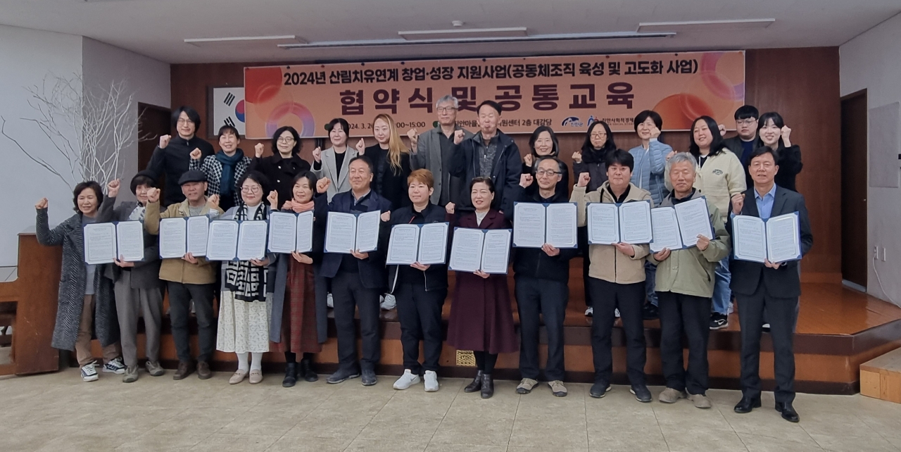 [진안=뉴전북]진안군과 진안사회적경제지원센터은 20일 진안마을만들기지원센터에서 산림치유연계 창업성장지원사업에 선정된 10개 팀과 협약식을 진행했다.