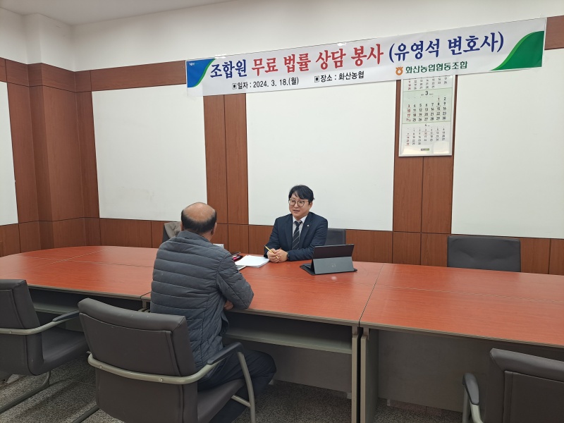 화산농협 무료법률상담 서비스는 취약 농업인 및 법률 도움이 필요한 조합원을 대상으로 1:1무료 법률상담을 진행했다.