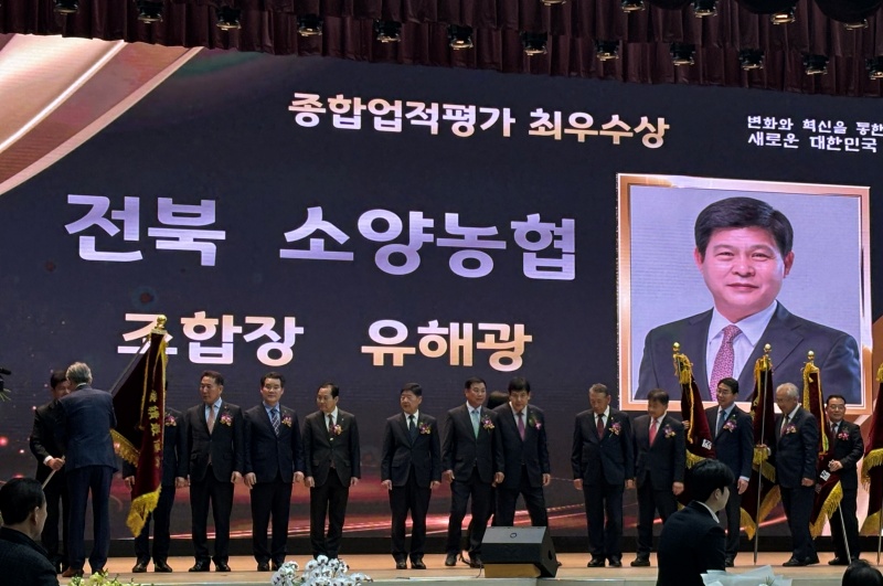 [완주=뉴전북] 완주 소양농협(조합장 유해광)이 농협중앙회가 선정한 ‘2023년 전국 농·축협 종합업적평가’에서 최우수상을 차지했다.
