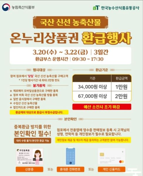 환급은 기존과 동일하게 판매자가 간편환급시스템에 고객 전화번호를 입력 후 고객이 시장 내 행사 부스를 방문하면 행사진행요원이 고객 정보를 확인해 온누리상품권을 환급해주는 절차로 진행된다.