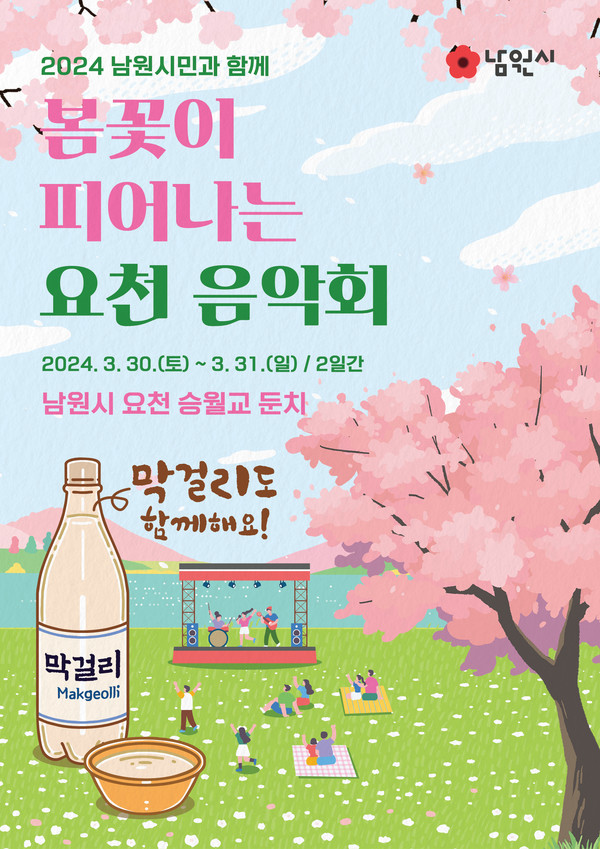 남원시 관계자는 "봄꽃이 만발하는 요천에서 열리는 이번 음악회를 통해 시민들이 일상의 시름을 잠시 내려놓고, 봄의 아름다움과 함께 편안한 시간을 보내시길 바란다"며, "많은 분들이 함께하셔서 즐거운 추억을 만들어 가시길 바란다"고 전했다.