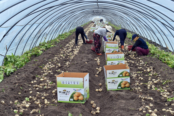 정 시장은 김재권 농가(광활13길 133)를 방문해 수확 현장에서 함께 구슬땀을 흘렸으며 앞선 25일 첫 수확 이후 본격적으로 이뤄질 감자 수확 현황을 살피고 주민들의 애로사항을 청취했다.