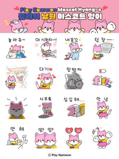 남원시 관광브랜드 「플레이남원」의 마스코트 ‘향이’ 이모티콘은 일상에서 느끼는 다양한 감정과 상황을 재치 있게 표현한 움직이는 16종의 이모티콘으로 구성됐다.