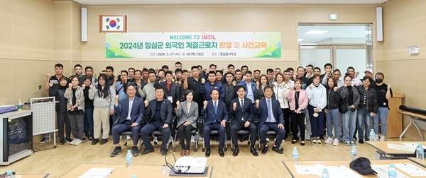 [임실=뉴전북] 전북 임실군이 본격적인 영농철을 앞두고, 농촌 일손에 큰 도움이 되는 외국인 계절근로자에 대한 환영식을 가졌다.