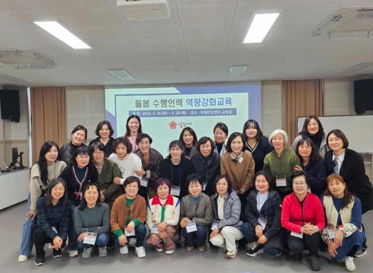돌봄 수행기관 3개소(남원사회복지관, 남원시노인복지관, 지리산노인복지센터)를 통해 전문적인 돌봄을 제공하는 중 세심한 돌봄과 촘촘한 치매관리가 이루어질 수 있도록 3개 분야의 전문교수(사회복지학-광주대학교 사회복지학 정희경 교수, 간호학-원광대학교 간호학과 송은주 교수, 작업치료학-부산보건대학교 작업치료과 김소중 겸임교수)를 초빙하여 복지와 치매에 대한 이해, 치매환자 소통기법, 인지자극의 중요성 등의 내용으로 돌봄 역량을 강화하는 교육을 진행했다.