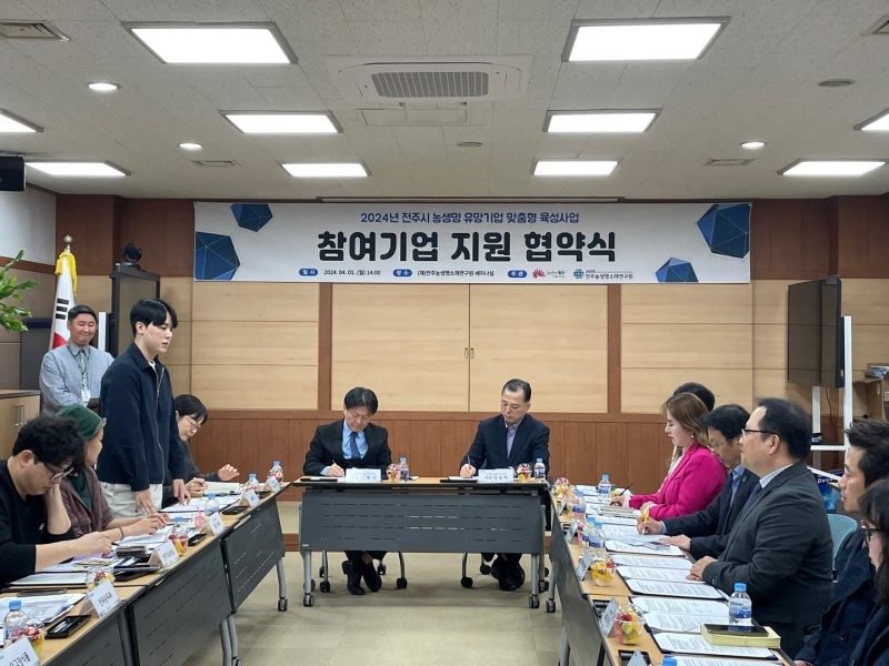 - (재)전주농생명소재연구원, 1일 ‘2024년 전주시 농생명 유망기업 맞춤형육성사업’ 업무협약 체결