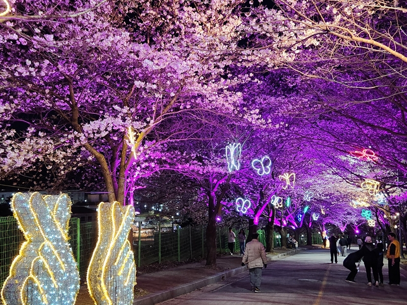 군민들과 방문객들은 낮뿐만 아니라 밤에도 아름다운 벚꽃경관과 더해진 불빛 아래에서 산책을 즐기며 지친 마음에 쉼을 얻고 소중한 추억을 만들고 있다.
