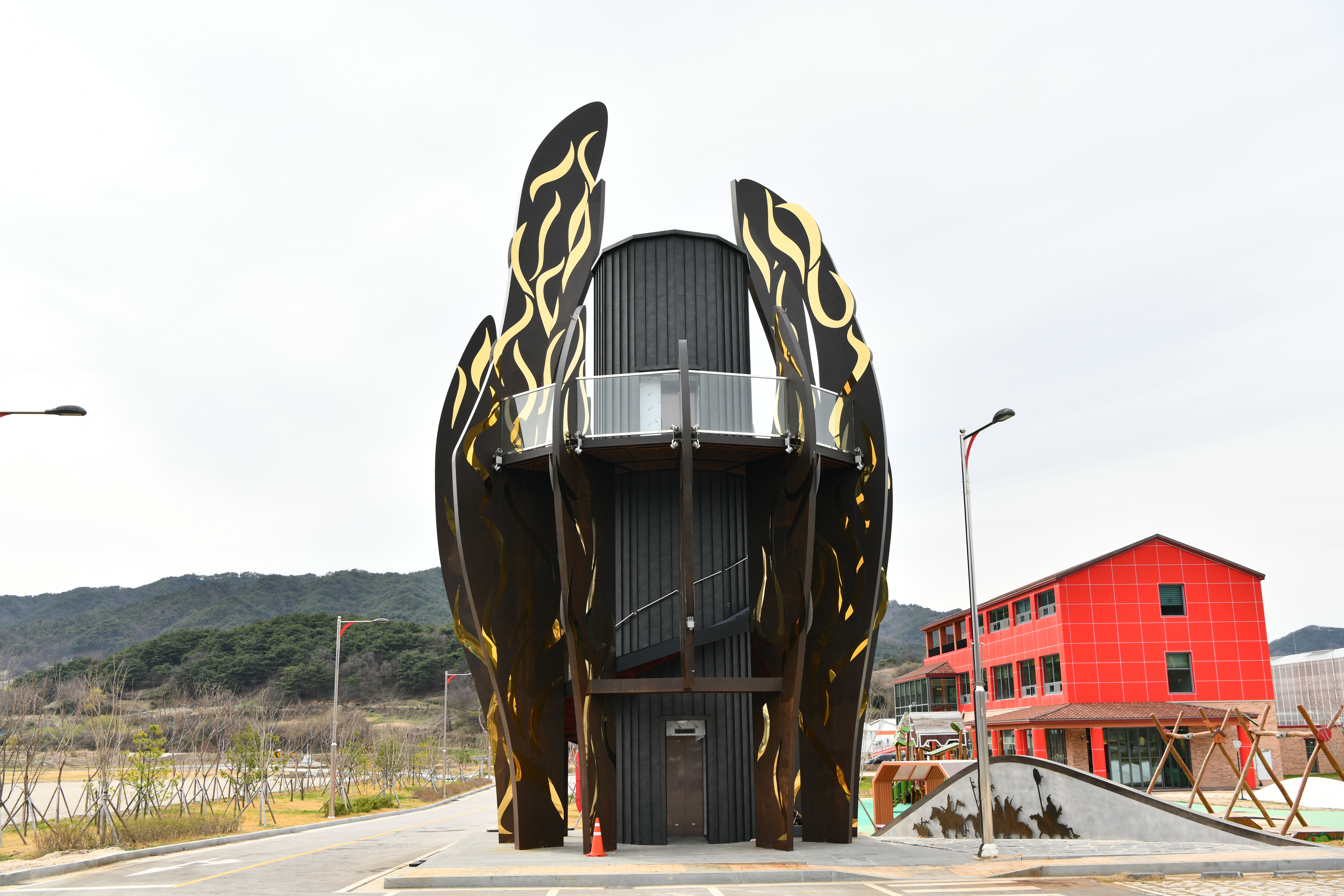 또한 용광로에서 흐르는 쇳물과 활활 타오르는 불꽃을 상징화한 독특한 생김새의 ‘장수 가야 상징조형물’은 방문객들에게 밤낮으로 꺼지지 않는 장수의 열정을 보여주고자 한다.