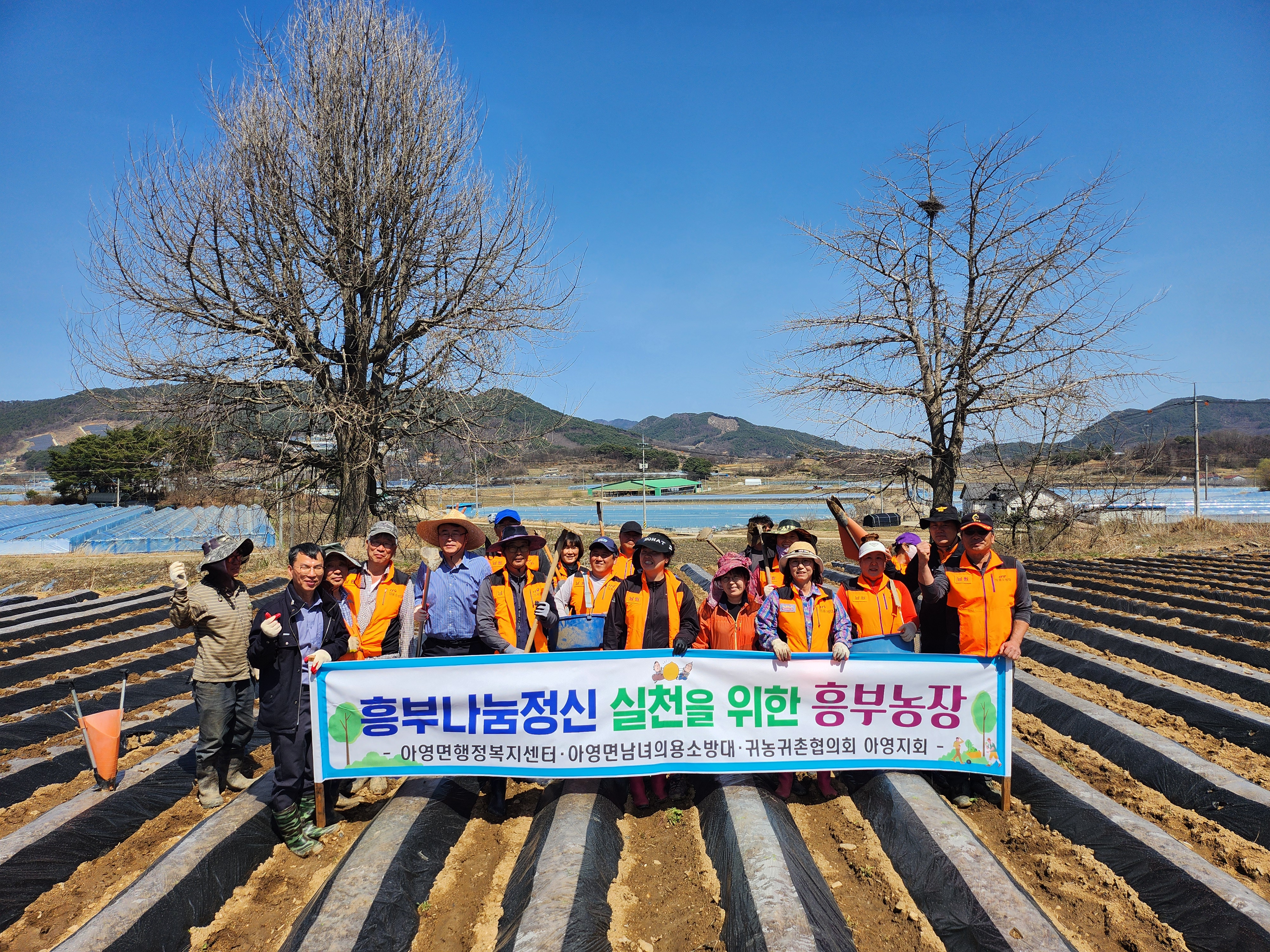 이번 흥부농장(아영면 월산리 일원) 사업은 관내 농지소유주(정창근)의 무상임차와 아영면 남․여 의용소방대, 귀농귀촌 재능기부단의 참여로 이루어졌다.