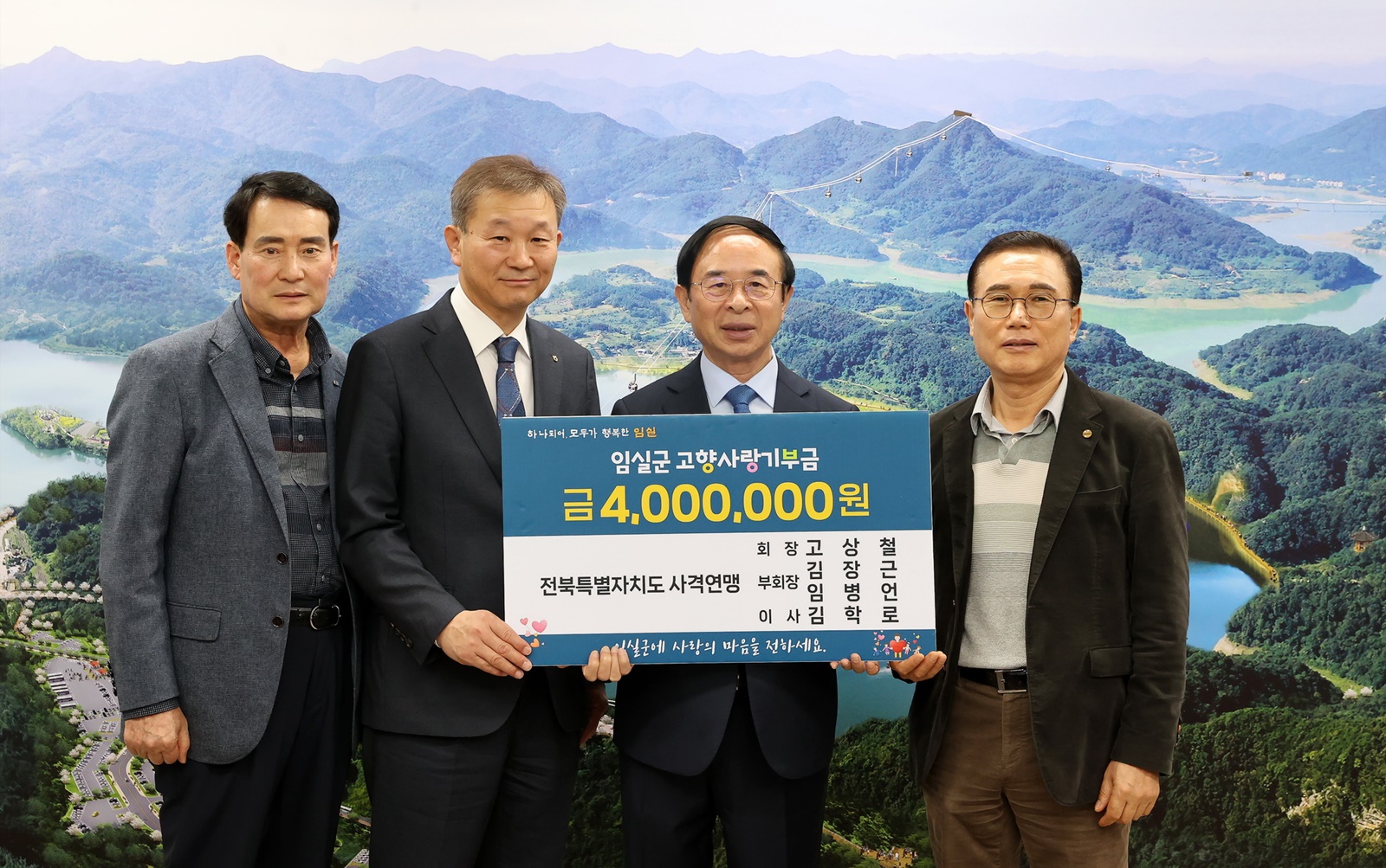 [임실=뉴전북] 전북 임실군은 전북특별자치도 사격연맹 임원 4명이 고향사랑기부제를 통해 임실군에 고액의 기부금을 전달했다고 3일 밝혔다.