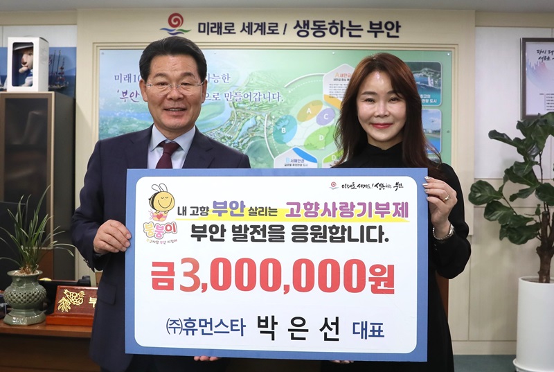 권익현 부안 군수는 “올해에도 변함없이 부안 고항사랑기부에 동참해 주셔서 감사드린다”라며 “박은선 대표의 코칭을 통해 부안의 고향사랑기부제가 많은 분들의 큰 호응을 얻을 수 있을 것으로 기대된다.”라고 말했다.