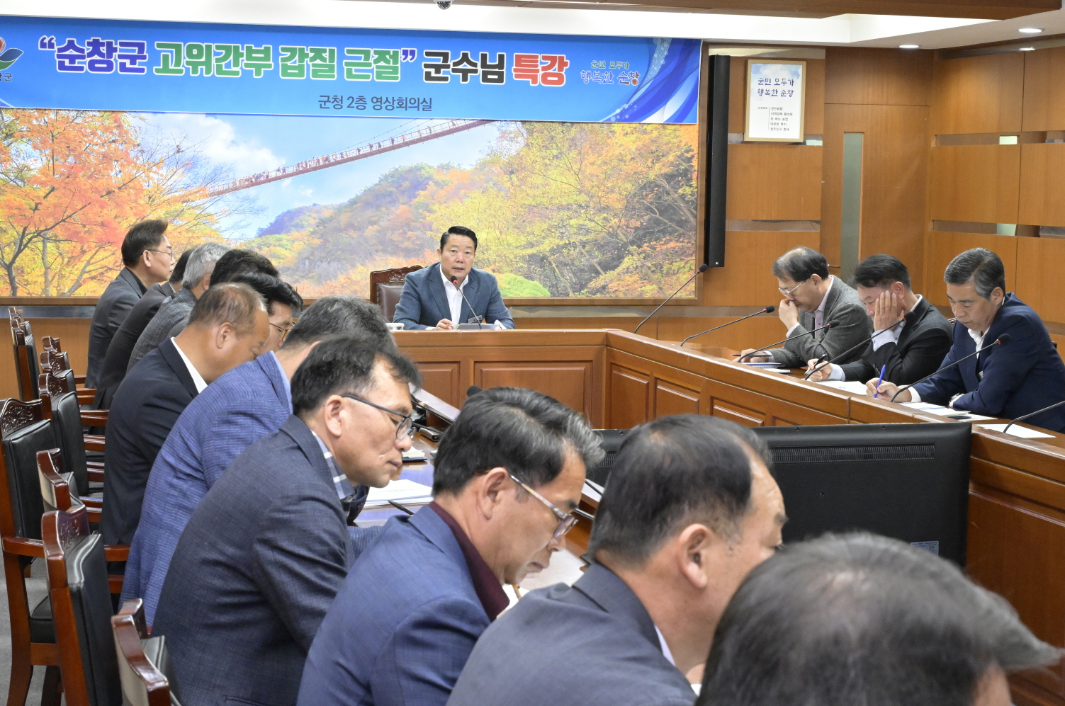 최영일 군수는 교육을 마치며, “오늘 우리가 여기서 배운 교훈을 직접 실천에 옮겨, 순창군 공직 사회가 더욱 건강하고 존중받는 조직 문화를 이루어 나가자”면서 “모든 간부공무원들은 갑질 없는 청렴한 조직을 만들기 위해 적극적인 참여와 협력을 당부한다”라고 말했다.