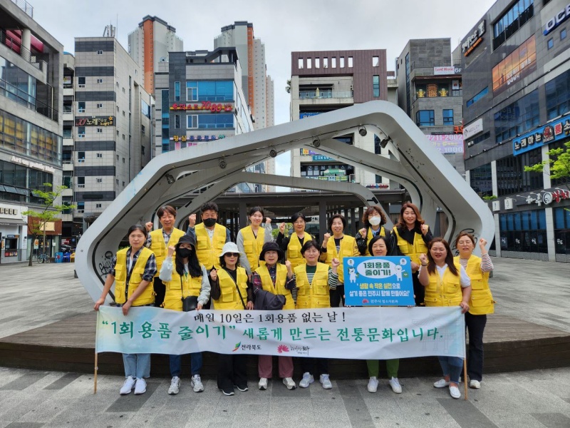 [전주=뉴전북] 전주시는 12일 효자동 서부신시가지 상가 일대에서 생활 속 1회용품 줄이기를 위한 ‘1회용품 없는 날’ 캠페인을 전개했다.