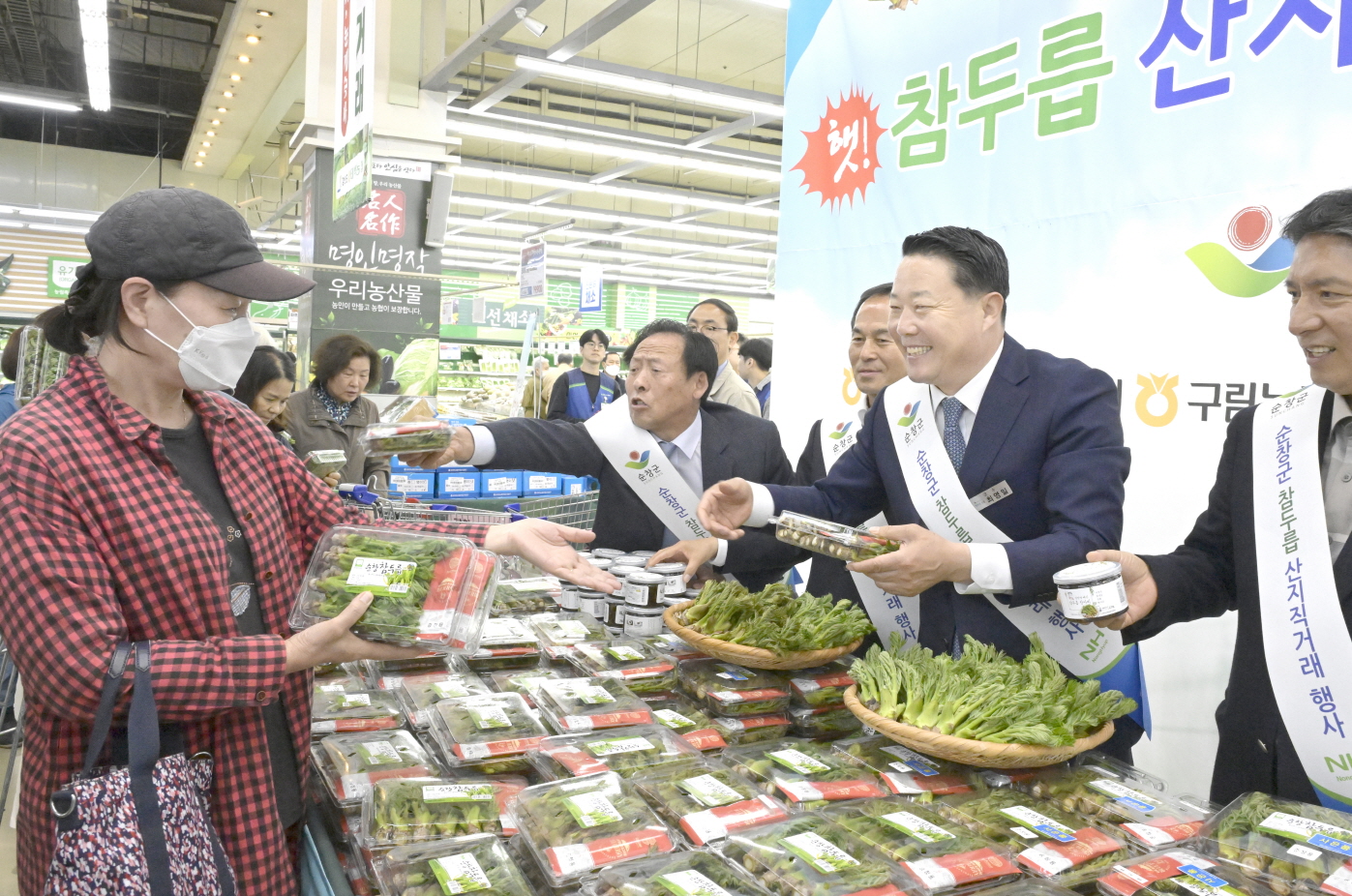 [순창=뉴전북] 전북 순창군이 16일 서울 양재 하나로 유통센터에서 순창군 주최하고 순창군 조합공동사업법인 주관으로 두릅 판촉행사를 가졌다.