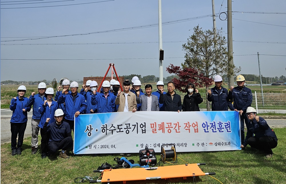 [김제=뉴전북] 김제시(시장 정성주)는 17일 복죽동에 위치한 김제공공하수처리장에서 밀폐공간 작업 안전 훈련을 실시했다고 밝혔다.