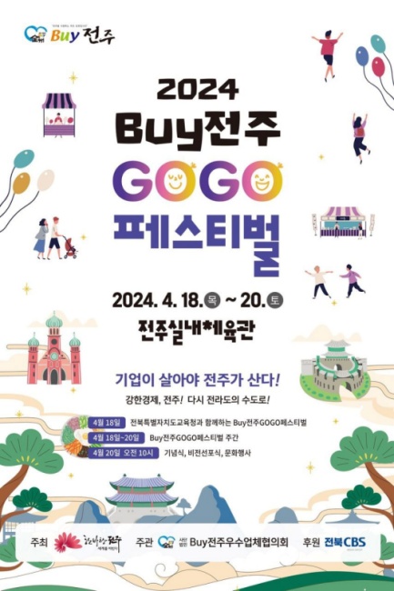 [전주=뉴전북] 전주시와 바이전주우수업체협의회(회장 전상문)는 오는 18일부터 20일까지 3일간 전주실내체육관에서 ‘2024 바이(Buy)전주 GOGO 페스티벌’을 개최한다.