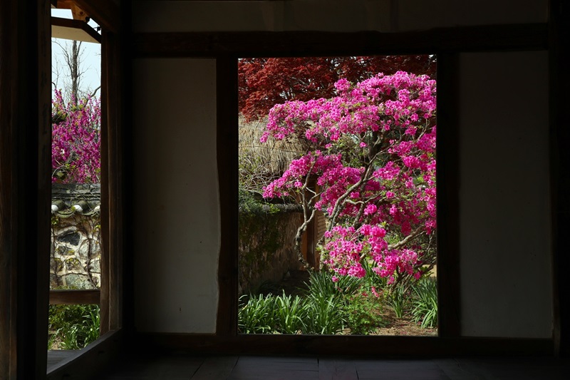 고풍스러운 전통 한옥의 툇마루에 앉아 바라보는 봄의 풍경은 한편의 그림을 보는 듯 아름답다.