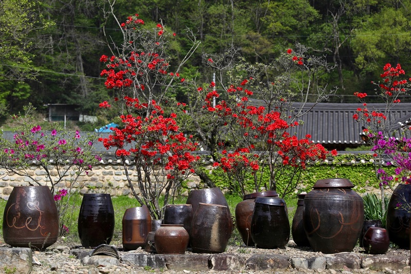 영산홍과 금낭화, 동백꽃, 자목련 등 각자의 아름다움을 뽐내는 봄꽃은 잿빛 기와와 비교돼 화려함을 더한다.