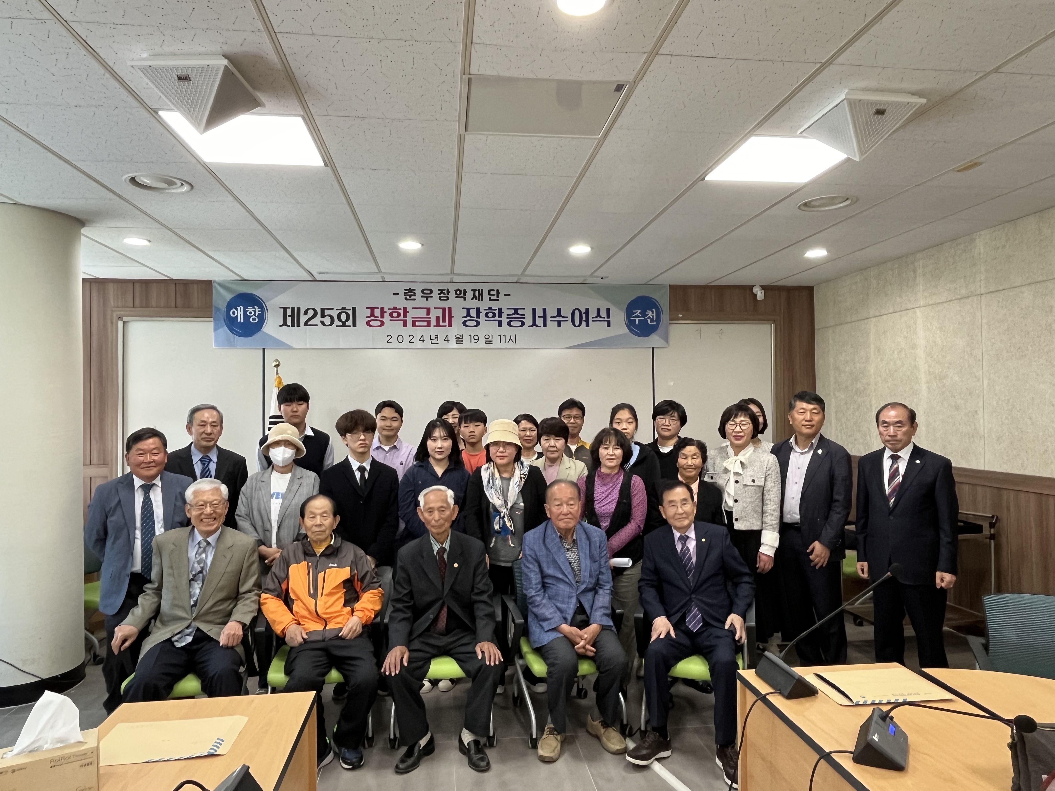 오늘 선발된 장학생은 진안군 관내 출신 대학생으로서 품행이 단정한 모범학생을 재단이사장과 진안교육지원청을 통하여 각 학교장 추천을 받아 2024년도 제25회 춘우 장학생으로 선발하여 대학생은 각 100만원씩, 고등학생은 50만원씩을 지급하고 중학생과 초등학생은 각 20만원씩 총 940만원 지급되어 본 재단설립 이래 25회에 걸쳐 356명에게 2억5천1백4십만원의 장학금을 지급하게 된다.