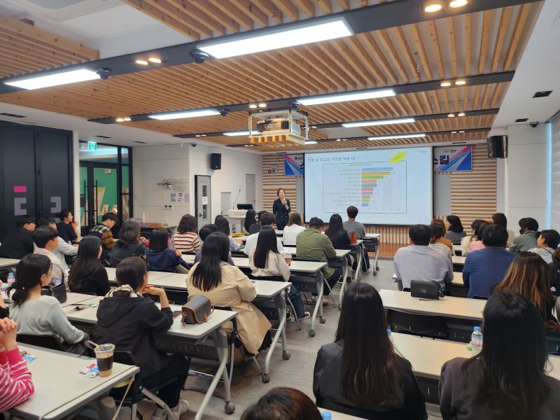 23일 오후 청년뜰에서 열린 이번 교육은 신지현 포유커뮤니케이션즈 대표가 강사로 나서 ‘스마트하게 대처하는 민원 응대 스킬’이라는 주제로 진행했다