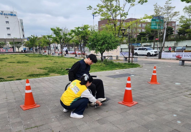 [군산=뉴전북] 제44회 장애인의 날을 맞아 직접 체험하면서 공감하는 장애인 인식 개선 캠페인이 진행됐다.